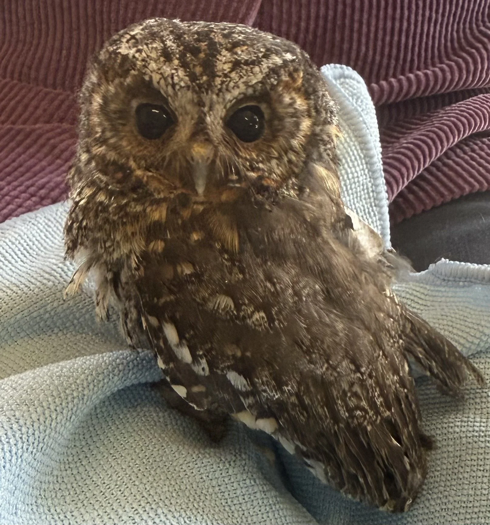 If you are needing to pick up/transport a raptor (owl, hawk, falcon), it is the feet, not so much the beak, to worry about; make sure the feet and the bird’s head are completely covered and wrapped in a blanket or large towel. It is best to place the bird in a box for transport to the rehabilitator.